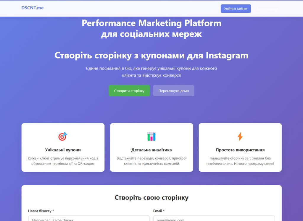 Єдине посилання в біо, яке генерує унікальні купони для кожного клієнта та відстежує конверсії
